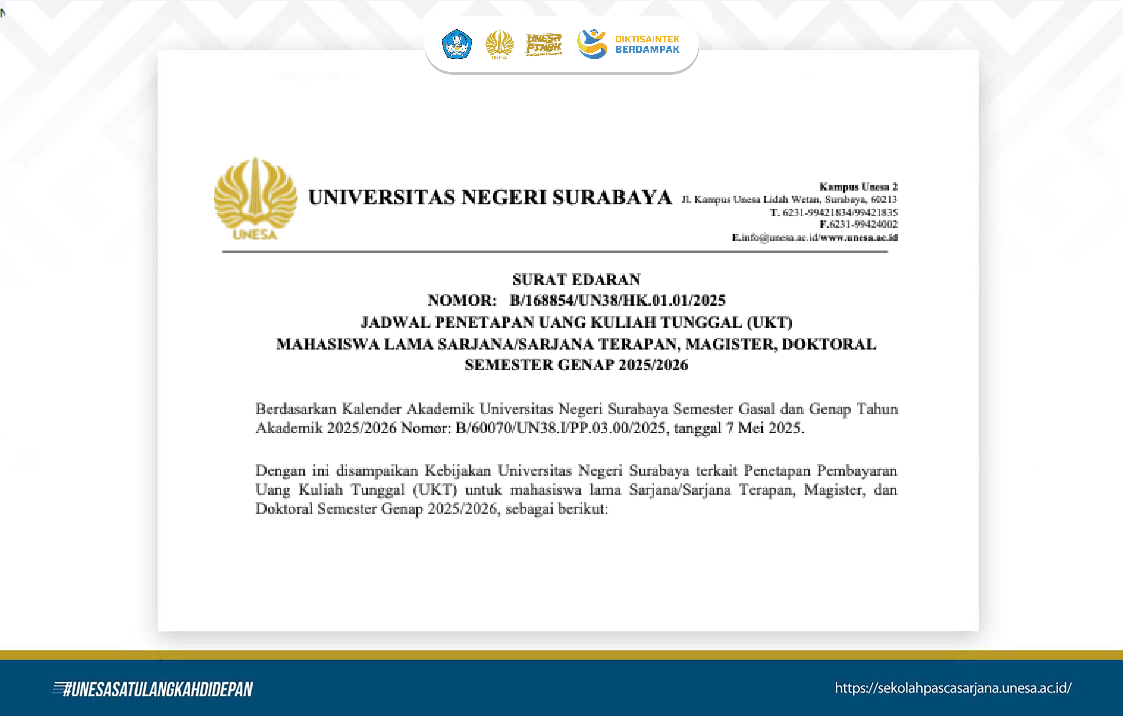 Information on New Student Admissions for Postgraduate Unesa in 2022